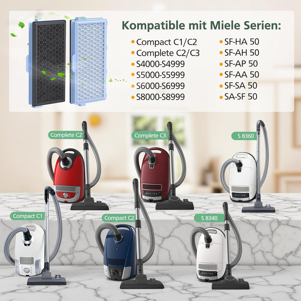 3 Filter für Miele Staubsauger [Compact C1 & C2, Complete C2 & C3, S8340] 3 Motorschutzfilter und 3
