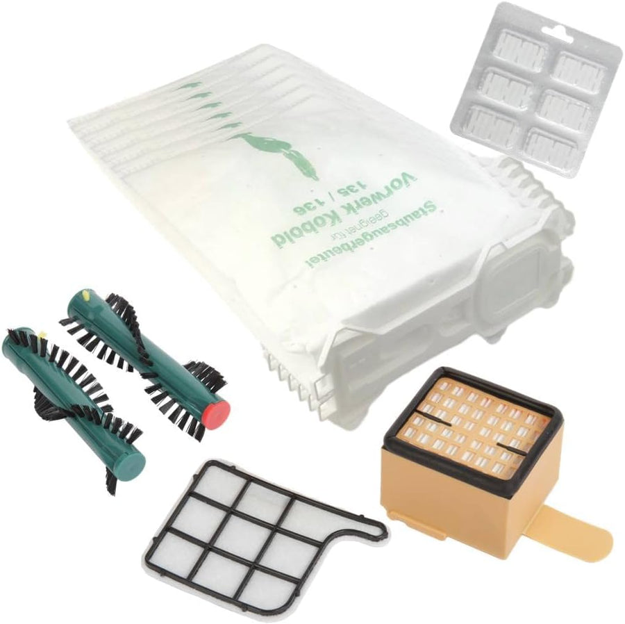 6 Staubsaugerbeutel VLIES+ Motorschutzfilter + Duftblock + Eratzbürsten passend für Vorwerk Kobold 1