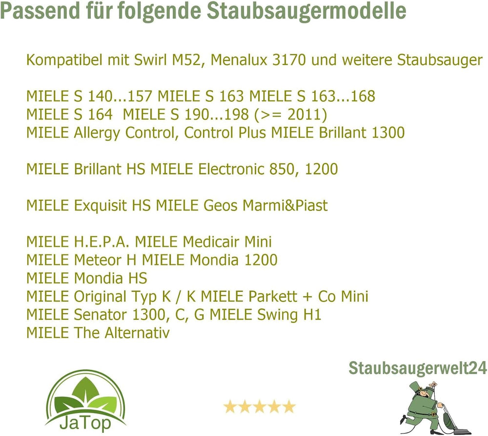 30 Staubsaugerbeutel kompatibel mit Swirl M52, geeignet für Miele S 140 – 157 Filtertüten (604_30)