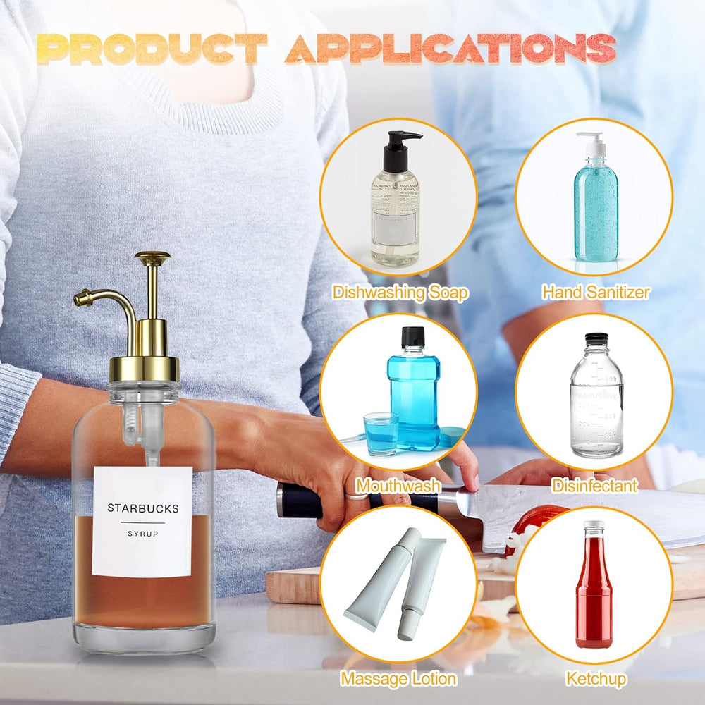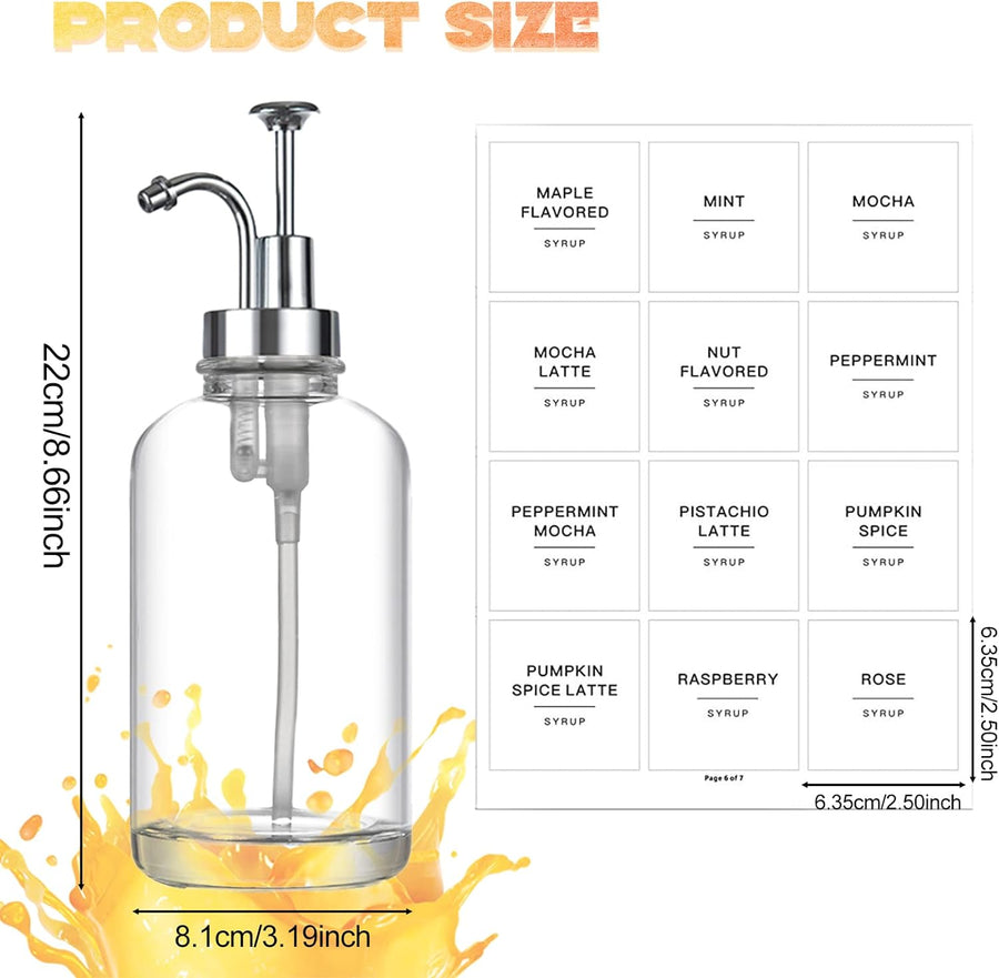 2 Stück Kaffee Sirup Spender Glas Set mit 36 Etiketten, Kaffee-Pumpenspender, Minimalistische Glas