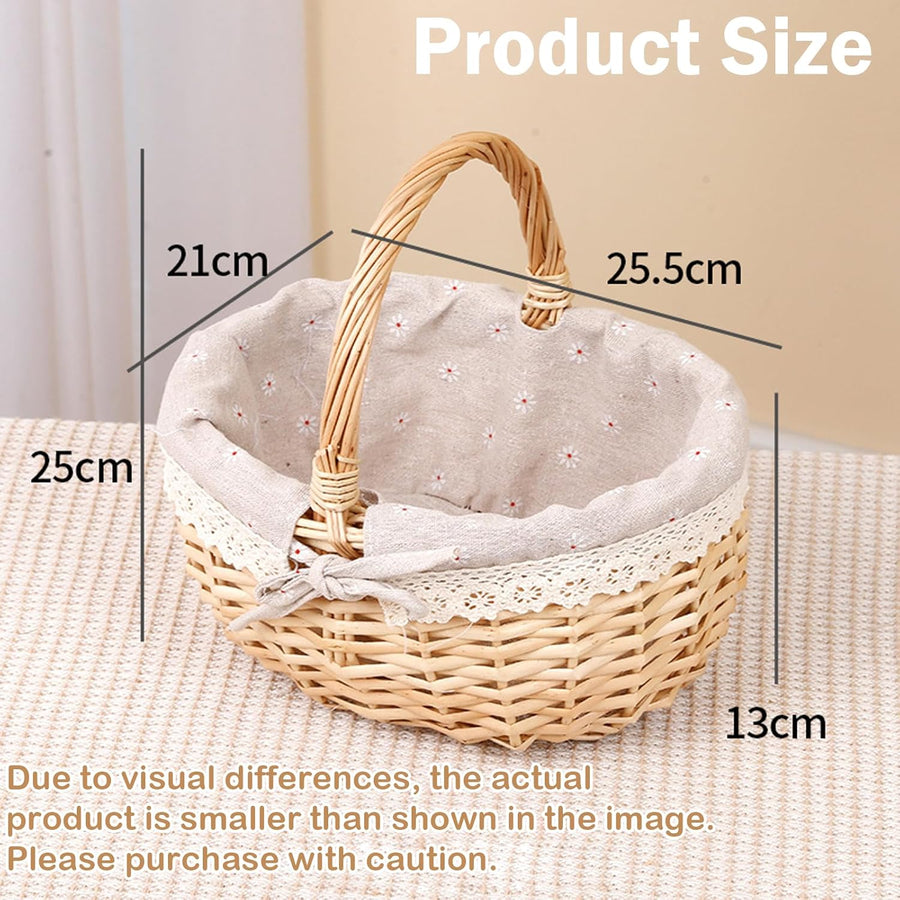 Picknickkorb aus Weide, Natural Weidenkorb mit Henkel, Handlicher Einkaufskorb aus Weide, Picknickko