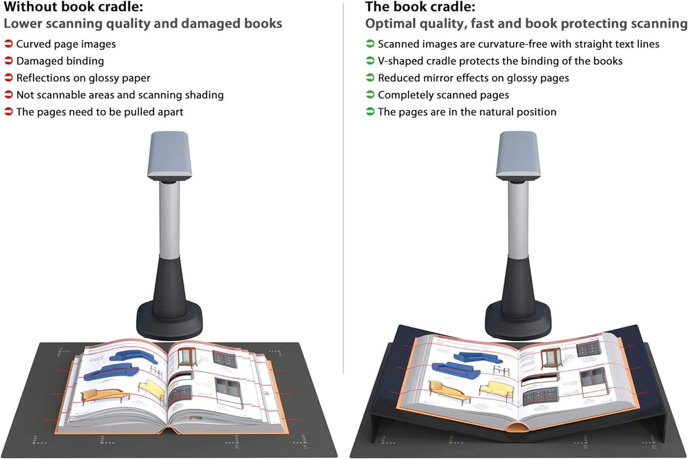 JOURIST Buchwiege für Aufsichtscanner und Buchscanner. Für Scanfläche bis A3. Aus schwarzem Acryl.