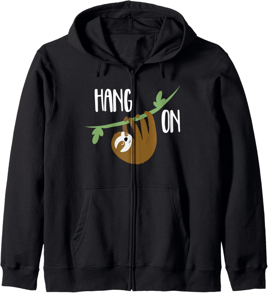 Lustiges Faultier T-Shirt Spruch "Hang On" Durchhalten Kapuzenjacke