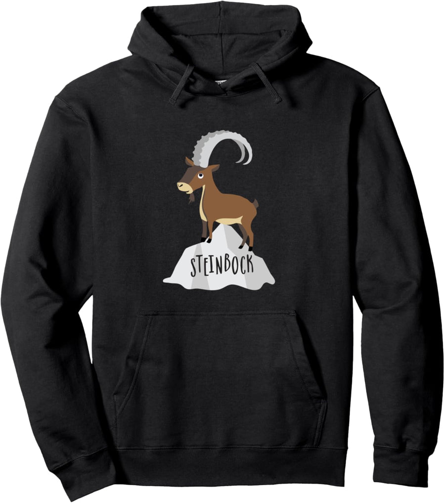 Lustiger Steinbock auf Felsen Berge Natur Gipfel Abenteuer Pullover Hoodie