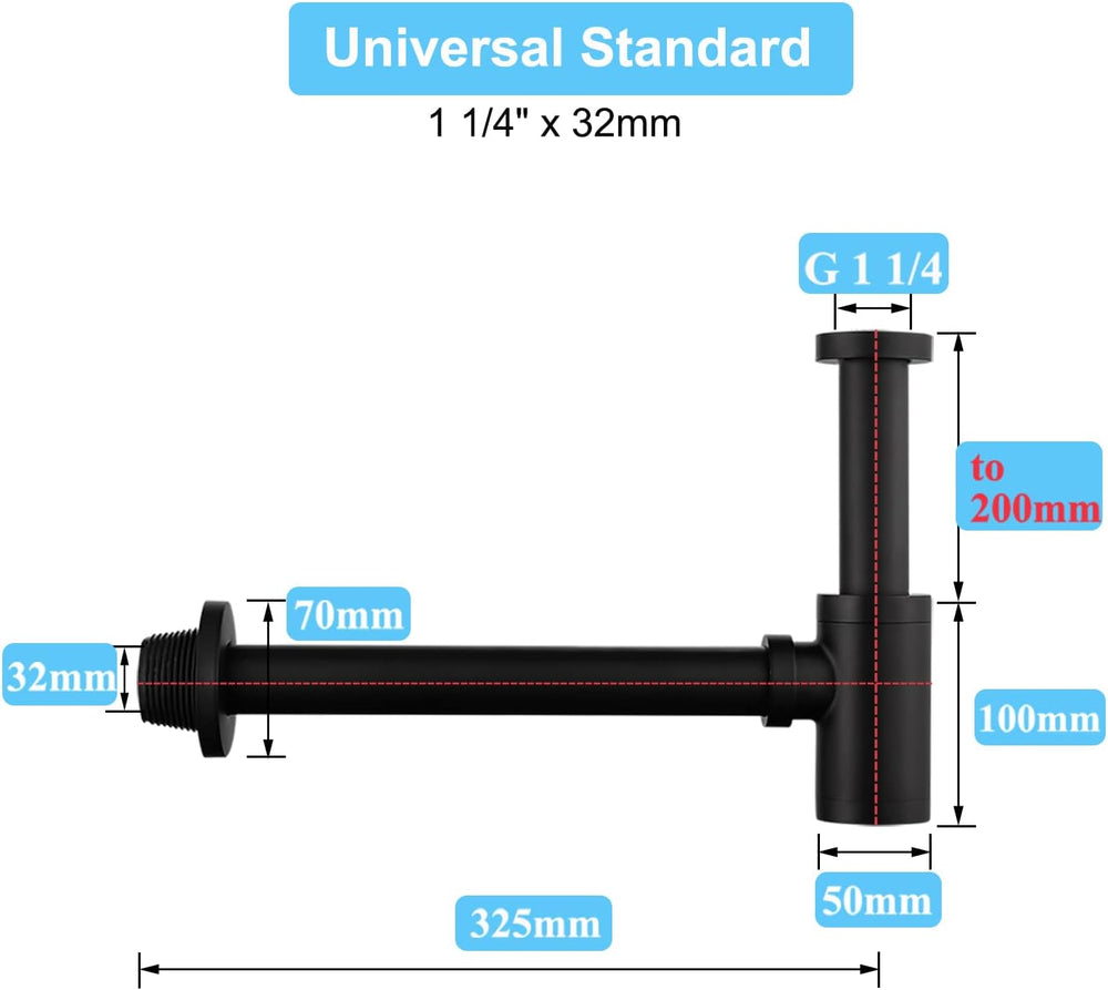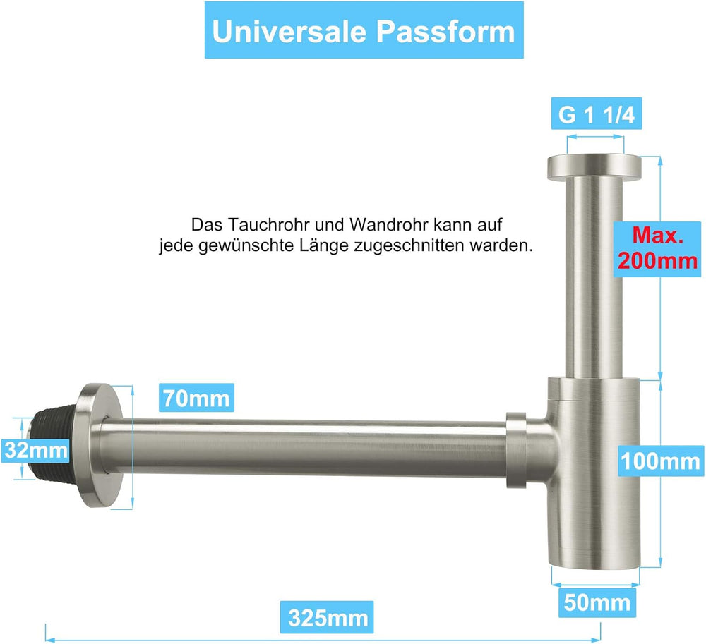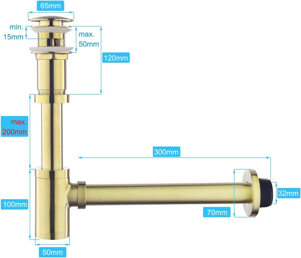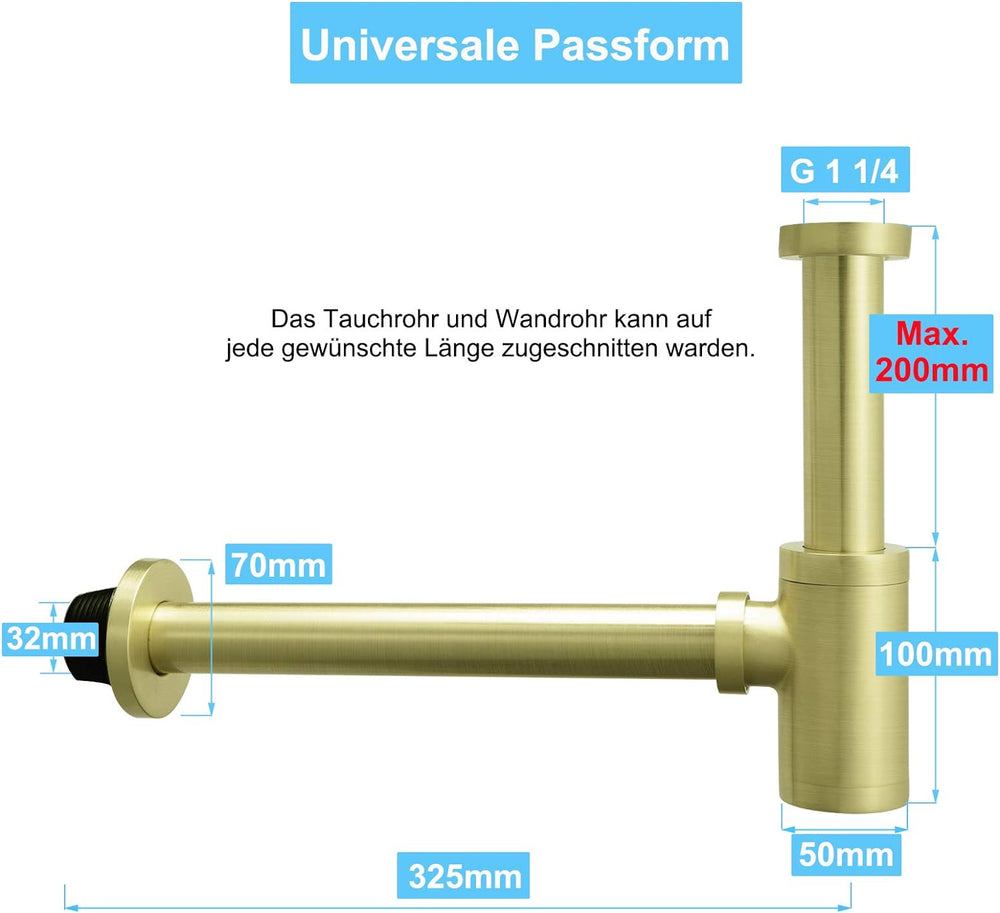 Keymark Design Siphon [Extra Lang 200mm Tauchrohr], Universal Messing Designsiphon Syphon Sifon für
