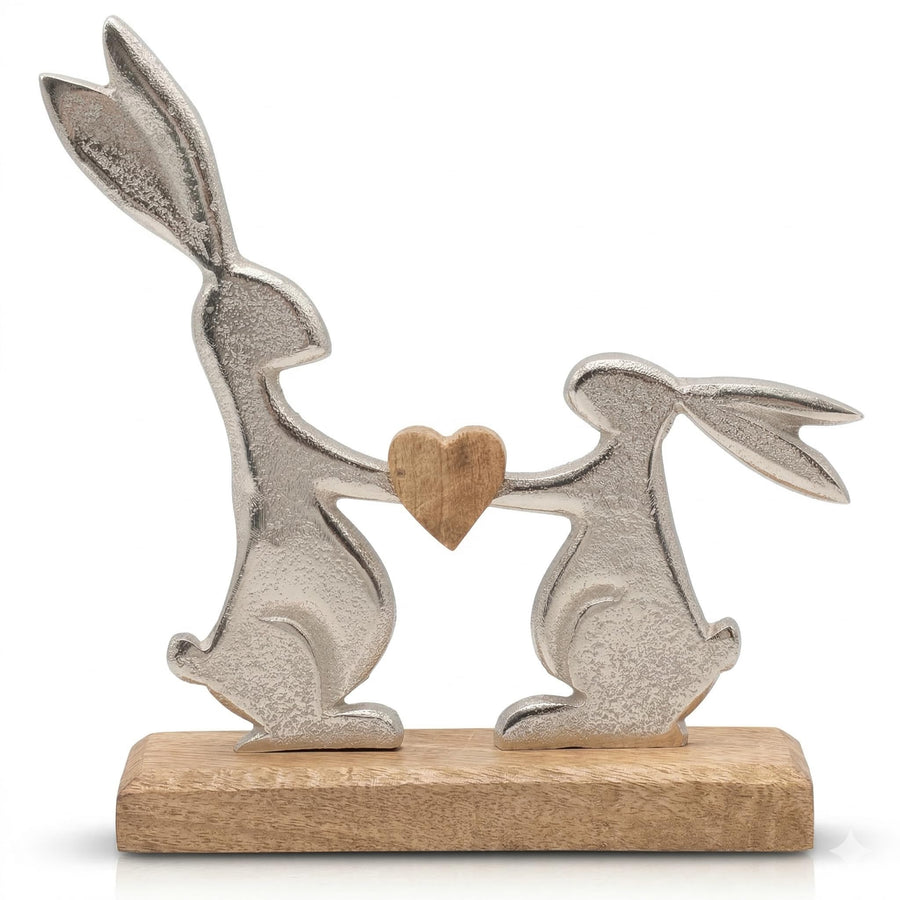 khevga Osterdeko Deko-Figur Osterhase Mango-Holz Metall Silber (29 x 29 x 5)