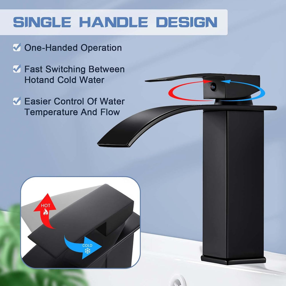 kisimixer Wasserhahn Bad Schwarz Wasserfall, Waschtischarmatur Bad Schwarz, Badarmatur Einhand Wasch