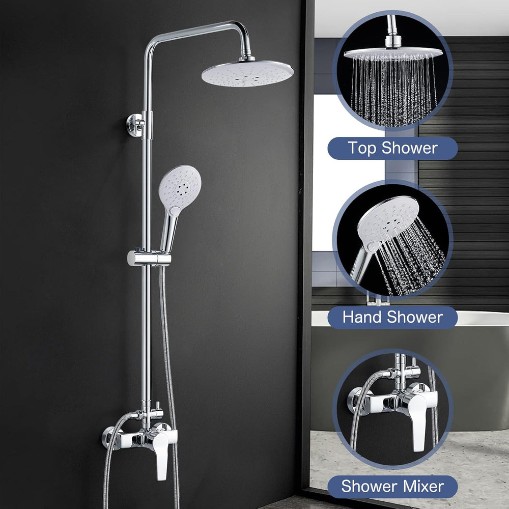 kisimixer Duschsystem mit Einhebelmischer - Regendusche Duschset mit 2 Strahlarten(8 Zoll), Duschkop
