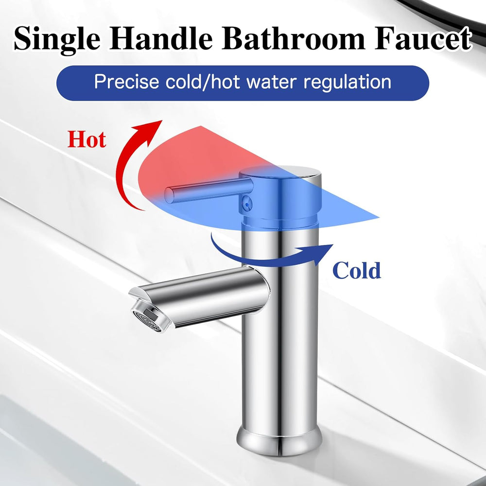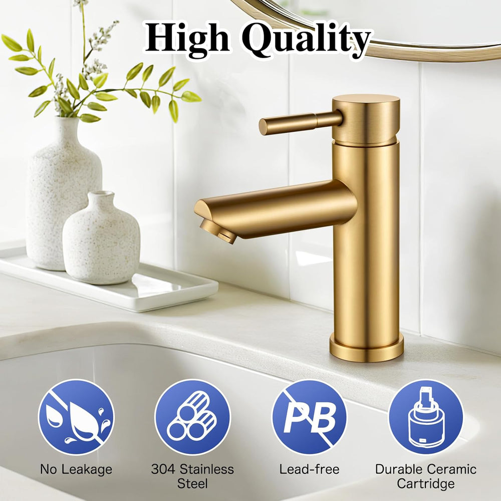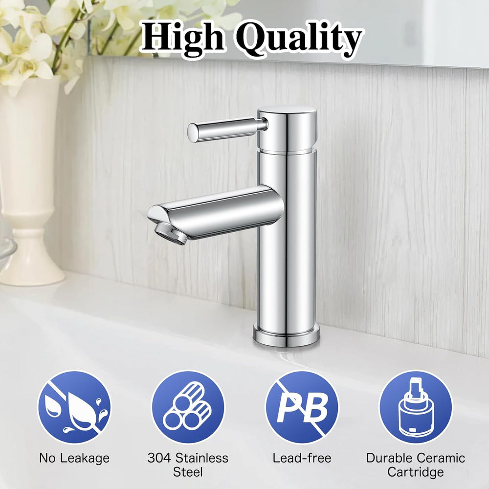 kisimixer Wasserhahn Bad, Einhebel-Waschtischarmatur 304 Edelstahl, Einloch Mischbatterie Waschbecke