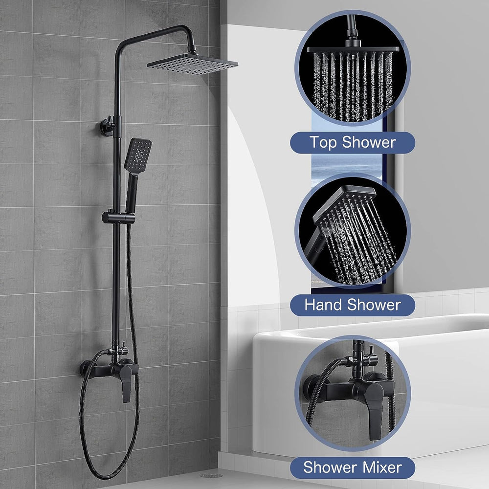 kisimixer Schwarzes Duschset mit Mischbatterie - Verstellbare Duschsäule, Regenduschkopf 21x21cm, Ha