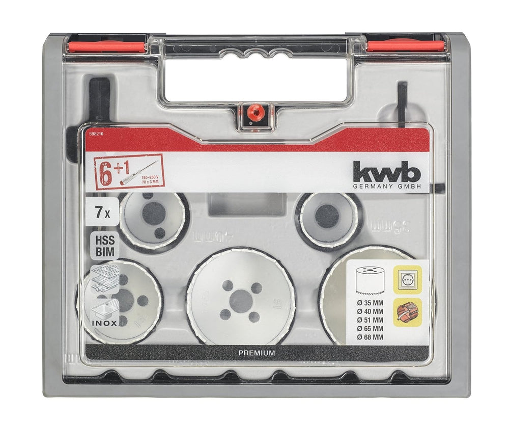 kwb 598260.0 Profi Bi-Metall Lochsäge-Set Nr. 2 für Elektriker – 7-teilig, HSS-CO, Vario Zahnung, 8