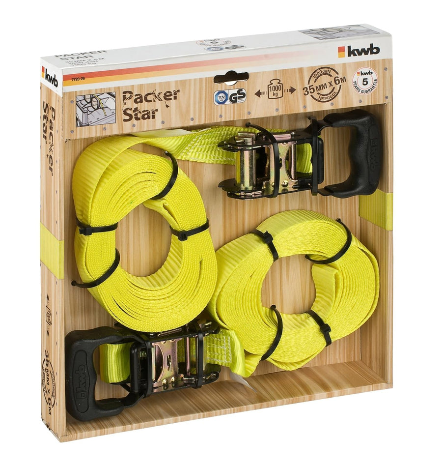 KWB 772026 2 Spanngurte mit Ratsche, 6.0 m x 35 mm