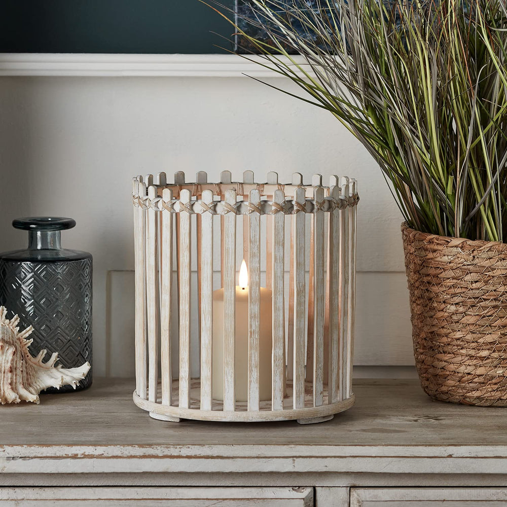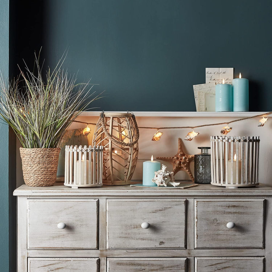 Lights4fun Holz Laterne mit TruGlow® LED Kerze batteriebetrieb Timer 20cm Innen Deko Maritim 8", 8"