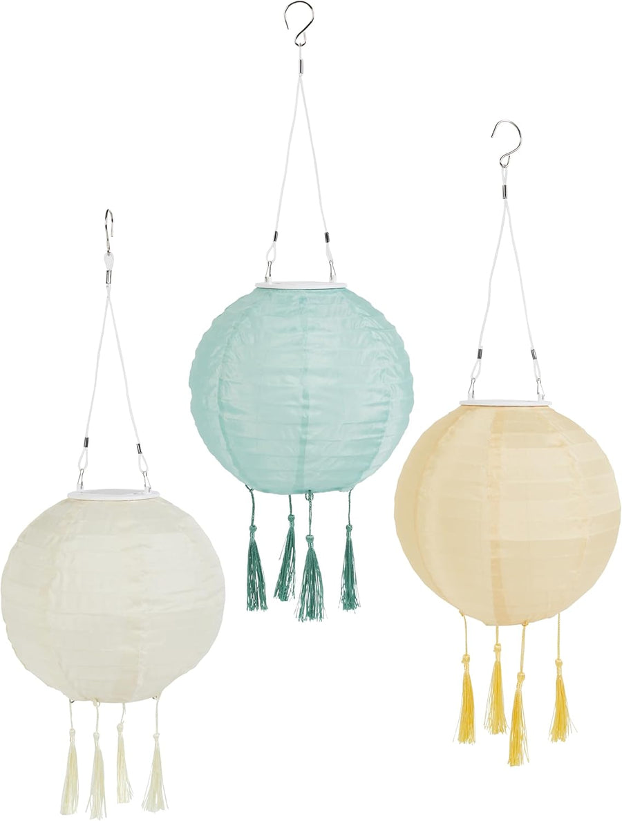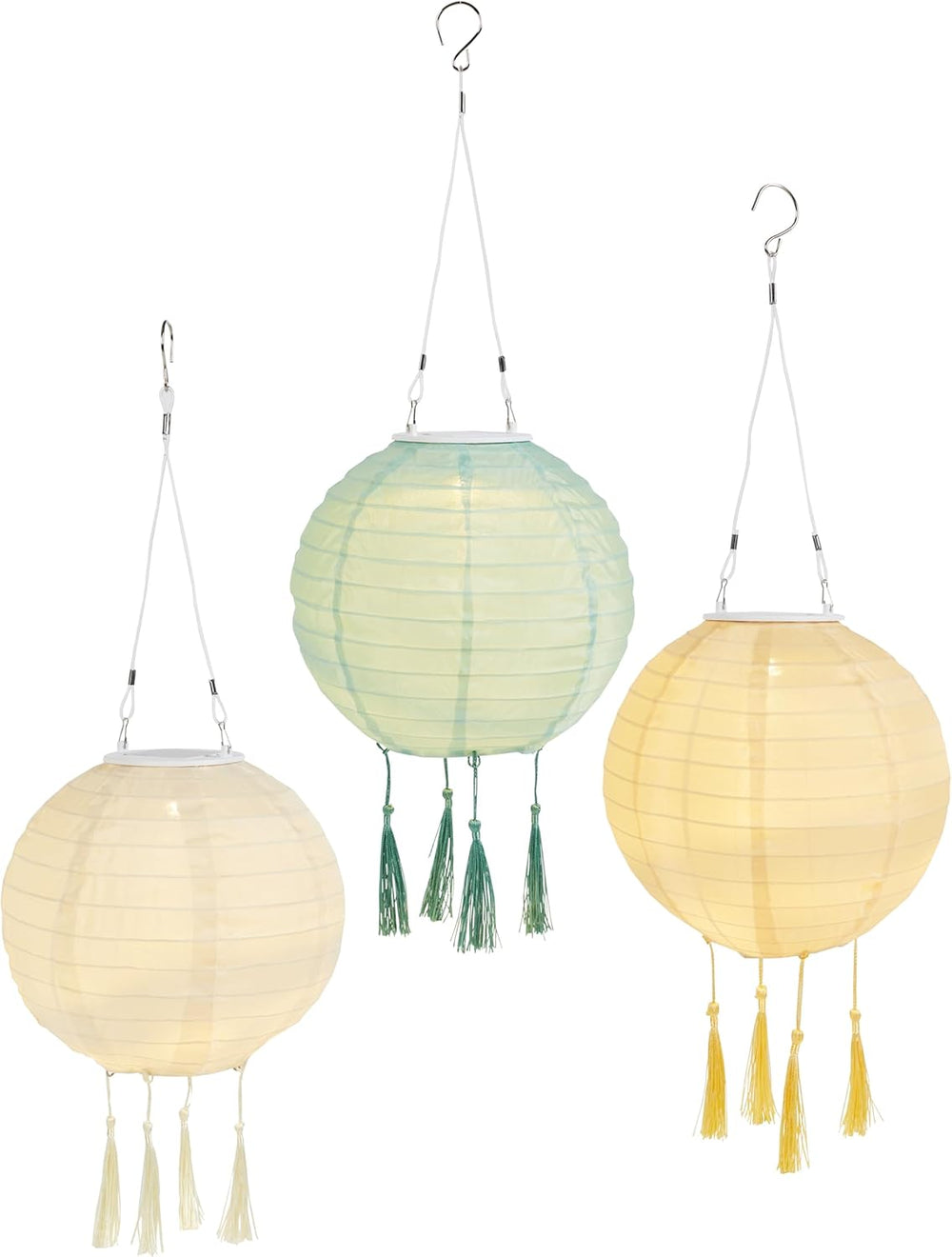 Lights4fun 3er Set Solar Lampions in Rosa Creme & Senf Solarlampen für Aussen Lucena Lampions Deko G