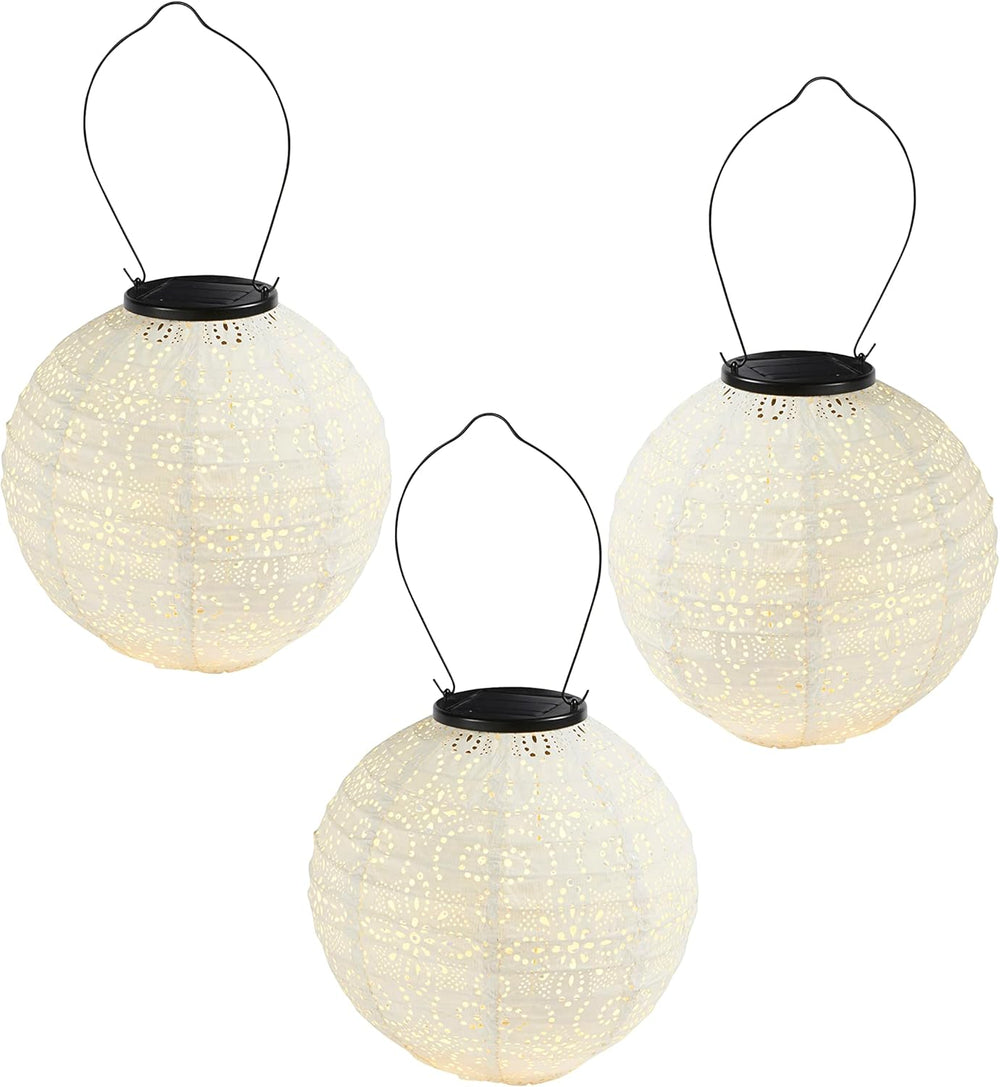 Lights4fun 3er Set LED Solar Lampion Tyvek Weiss Marokkanische Laterne Aussen Gartenbeleuchtung 3 St