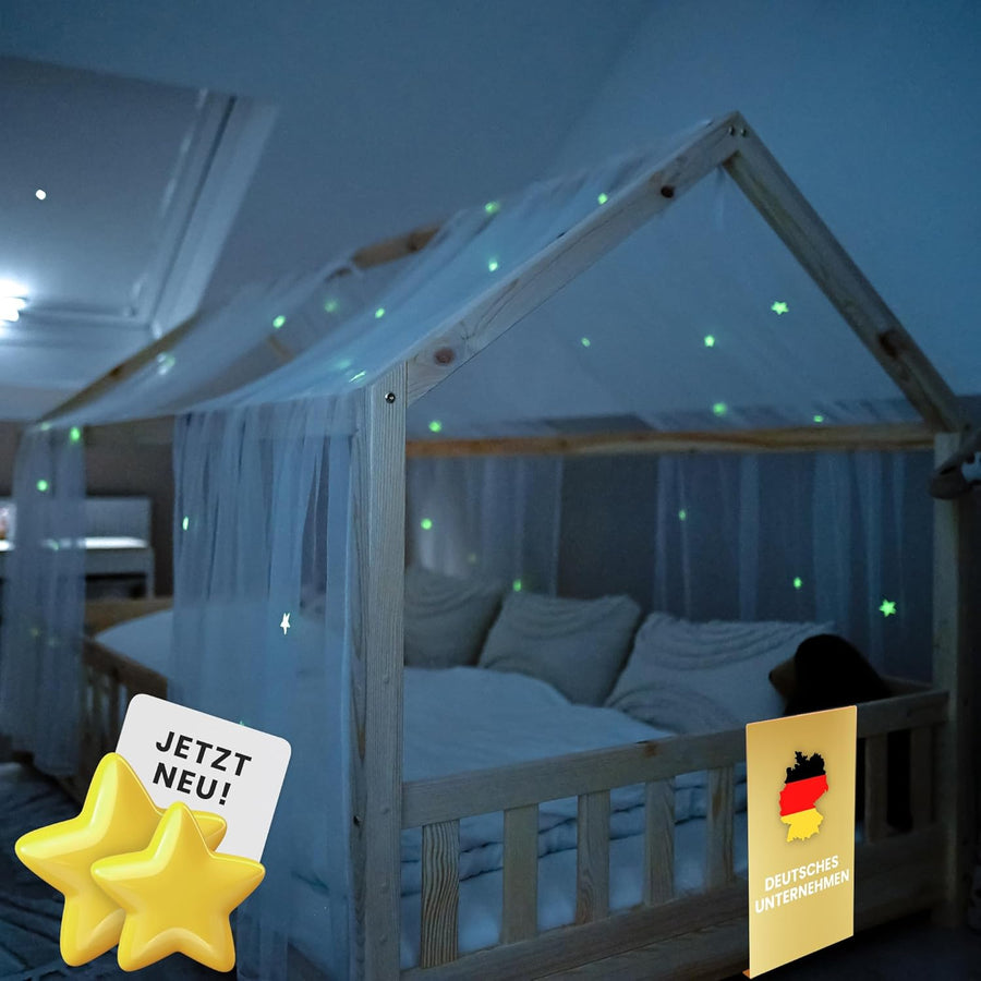 lilimaus Hausbett Himmel mit leuchtenden Sternen - Betthimmel Hausbett Deko - Geschenk Mädchen & Jun