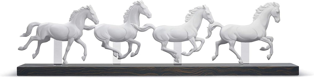 LLADRÓ Figur Galoppierende Herde. Weiss. Pferde. Porzellan.