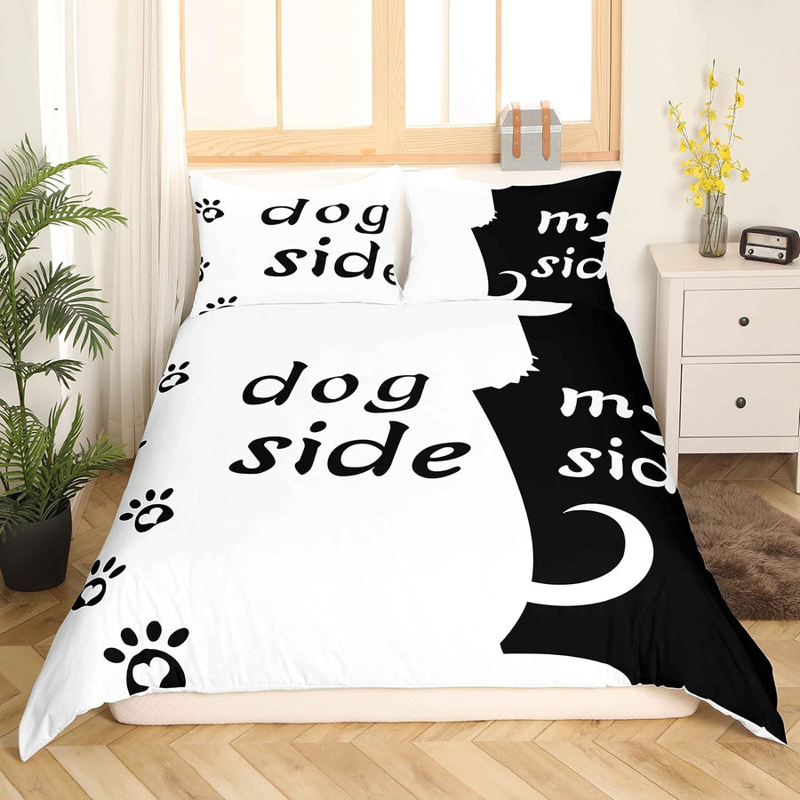 Loussiesd Hundeseite und Meine Seite drucken Bettwäsche Set Paar Bettbezug Set Schwarzer weisser Hun