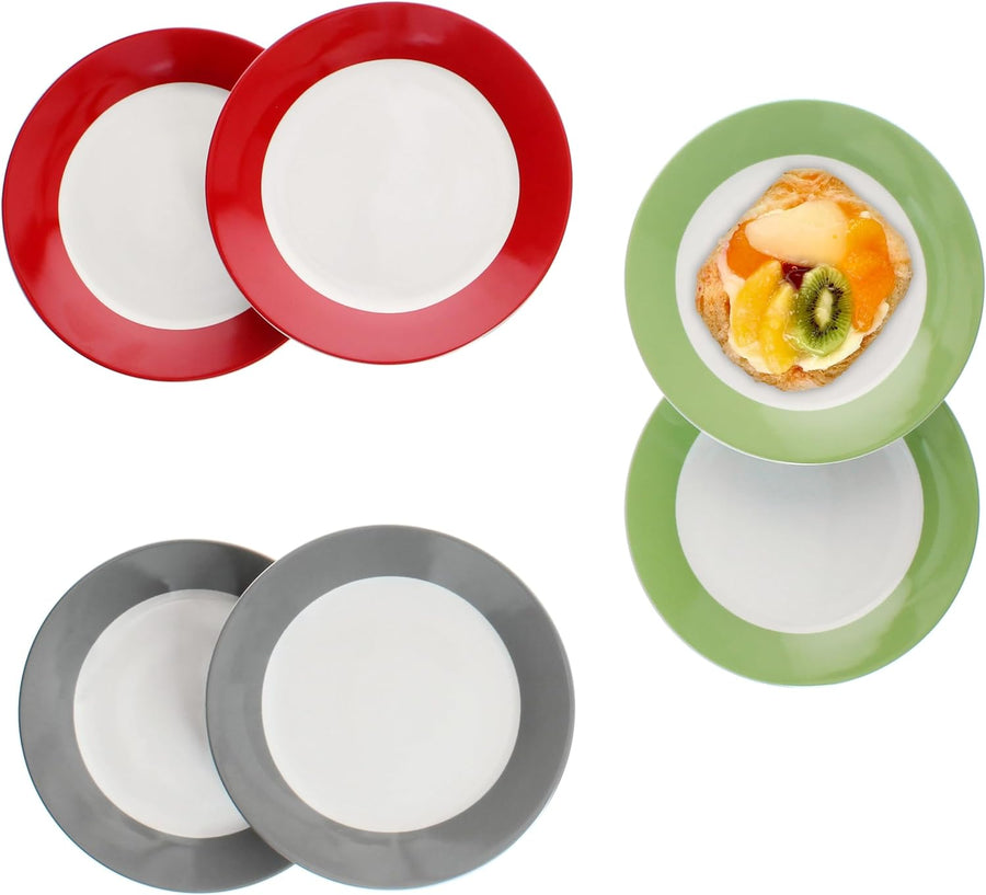 MamboCat 6er Set Variant Trio Kuchenteller I farbige Porzellan-Frühstücksteller für 6 Personen in Gr