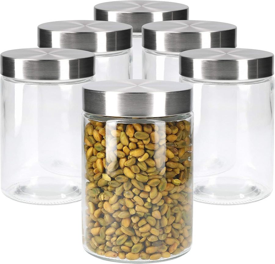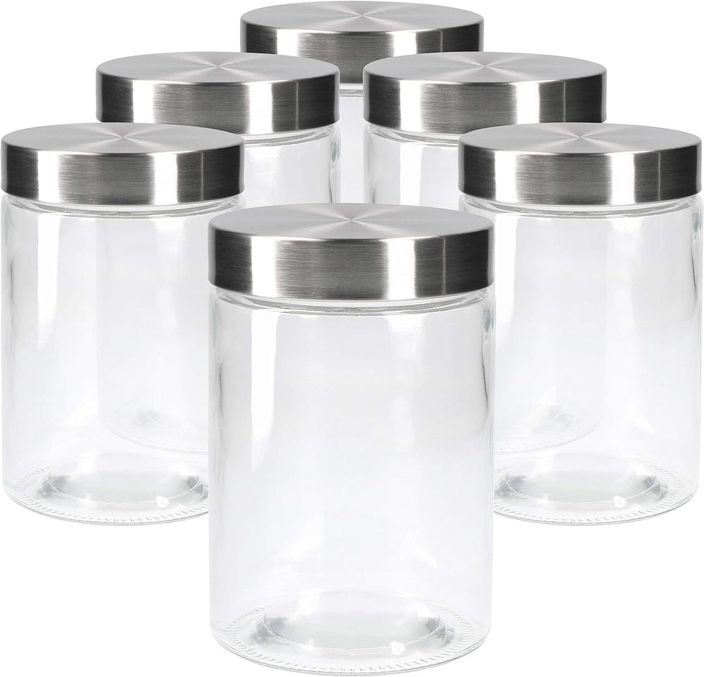 MamboCat Vorratsgläser Set Bera 6-tlg. mit Edelstahldeckel I befüllbare Glasdosen Ø 11 cm je 1,2 Lit