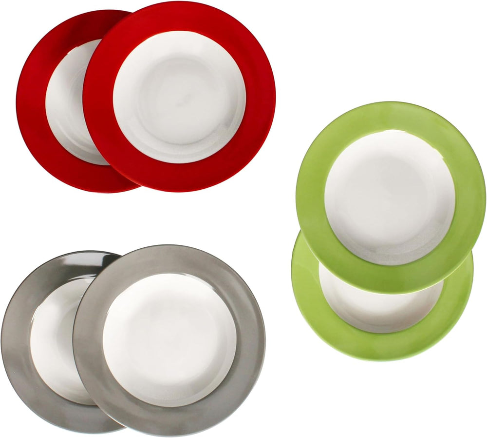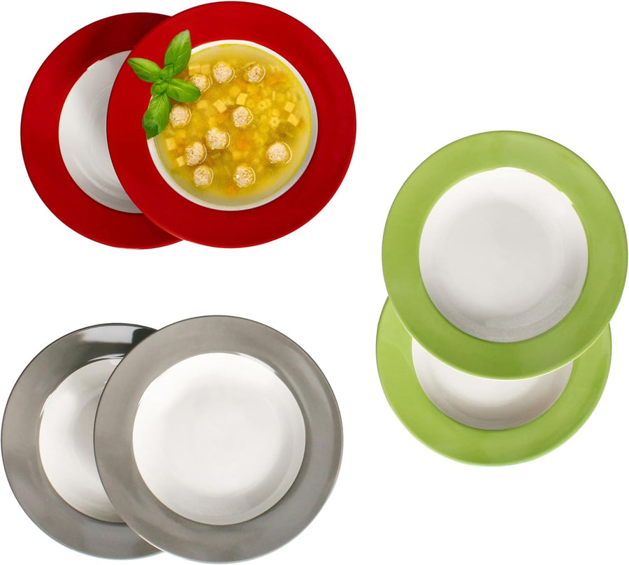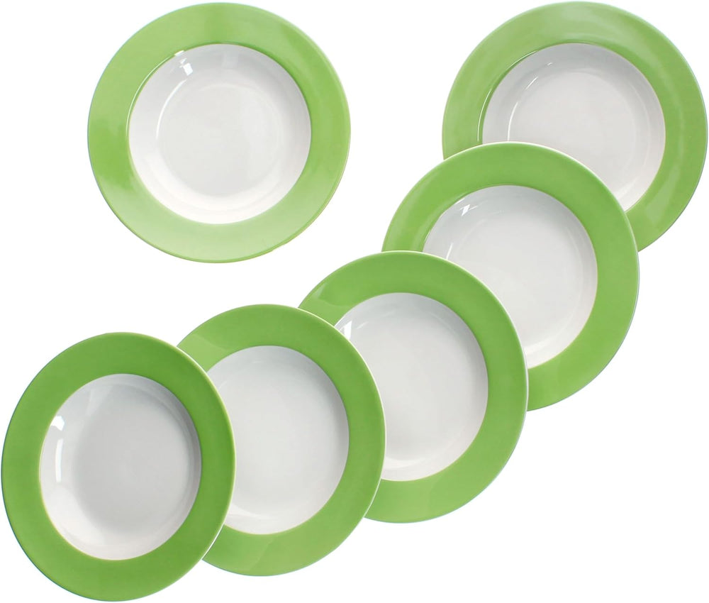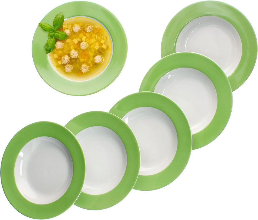 MamboCat 6er Set Variant Trio Suppenteller I farbige Tiefe Porzellan-Teller für 6 Personen in Grün,