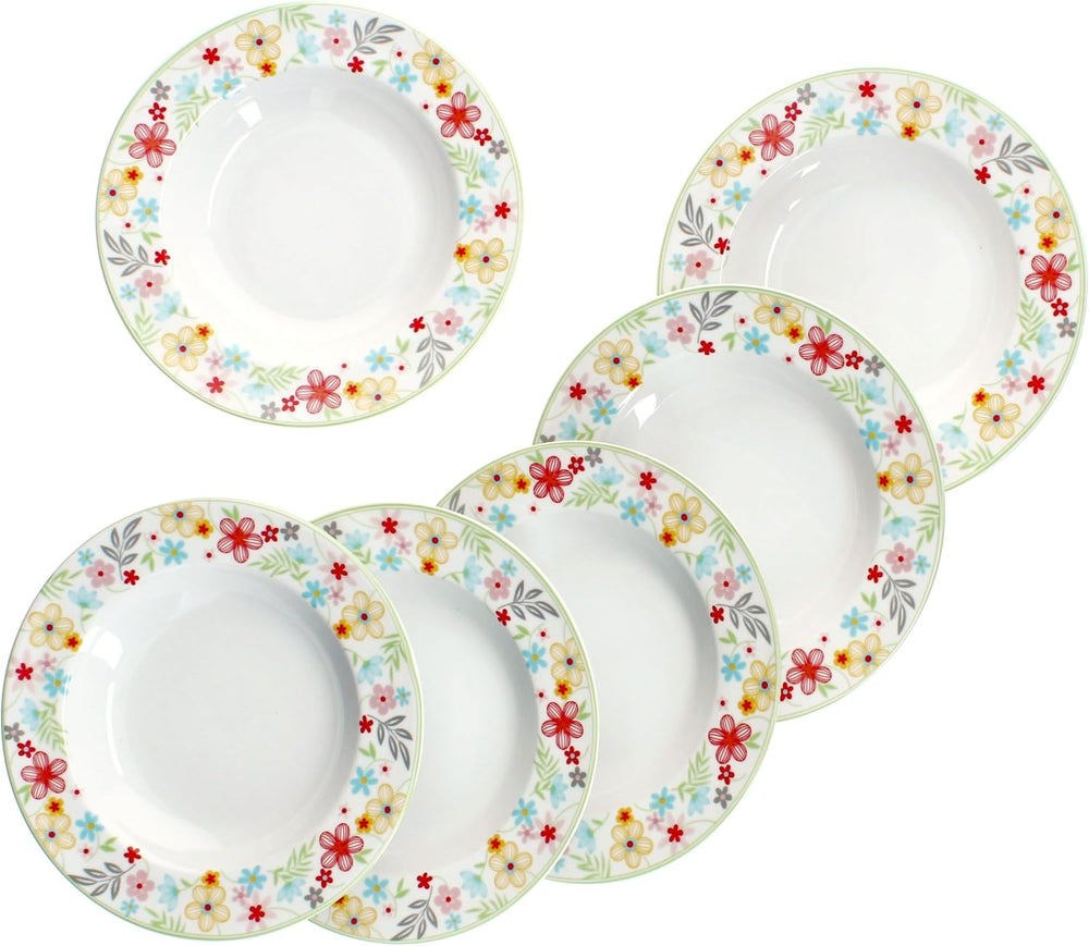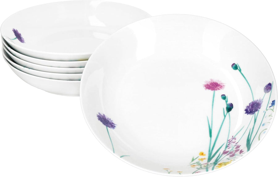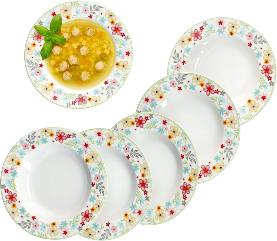 MamboCat 6er Set Marie Suppenteller I 400ml I Porzellan-Geschirr mit Blumenwiese-Dekor für 6 Persone