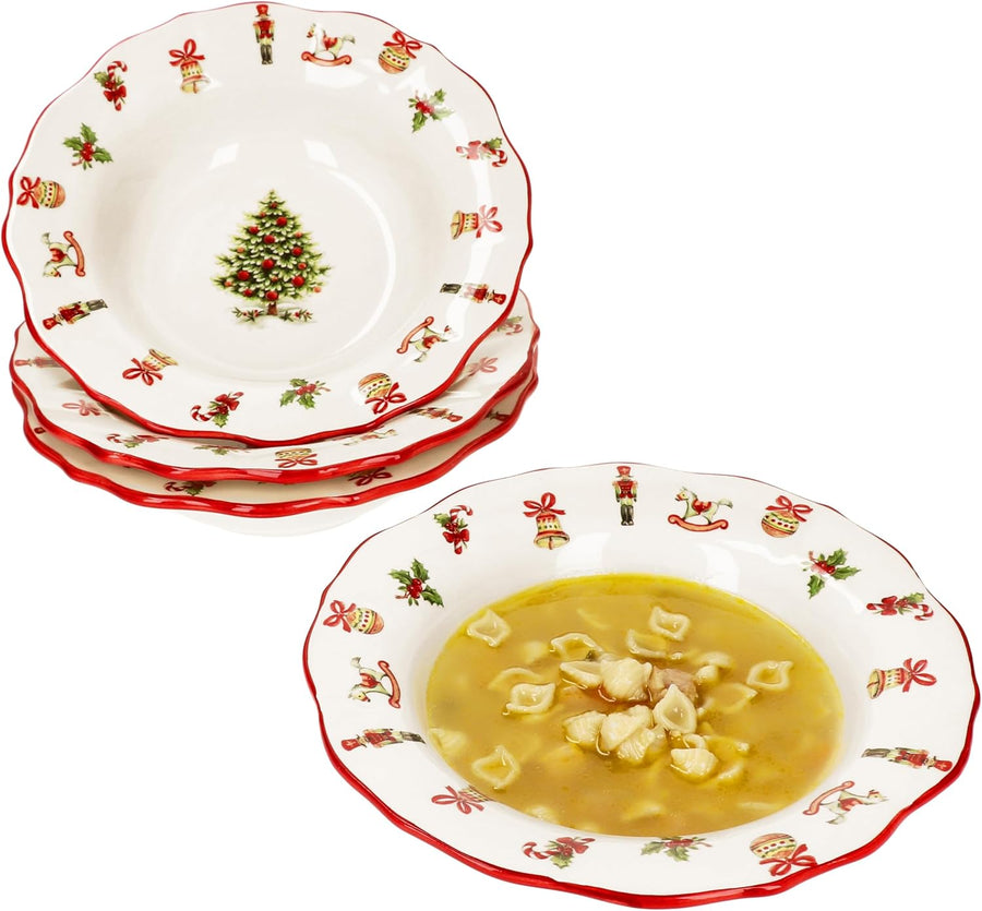 MamboCat Maestro Natale 4er Set Suppenteller I 350ml I Tiefe italienische Keramik-Teller für 4 Perso