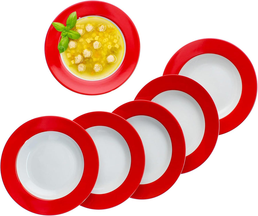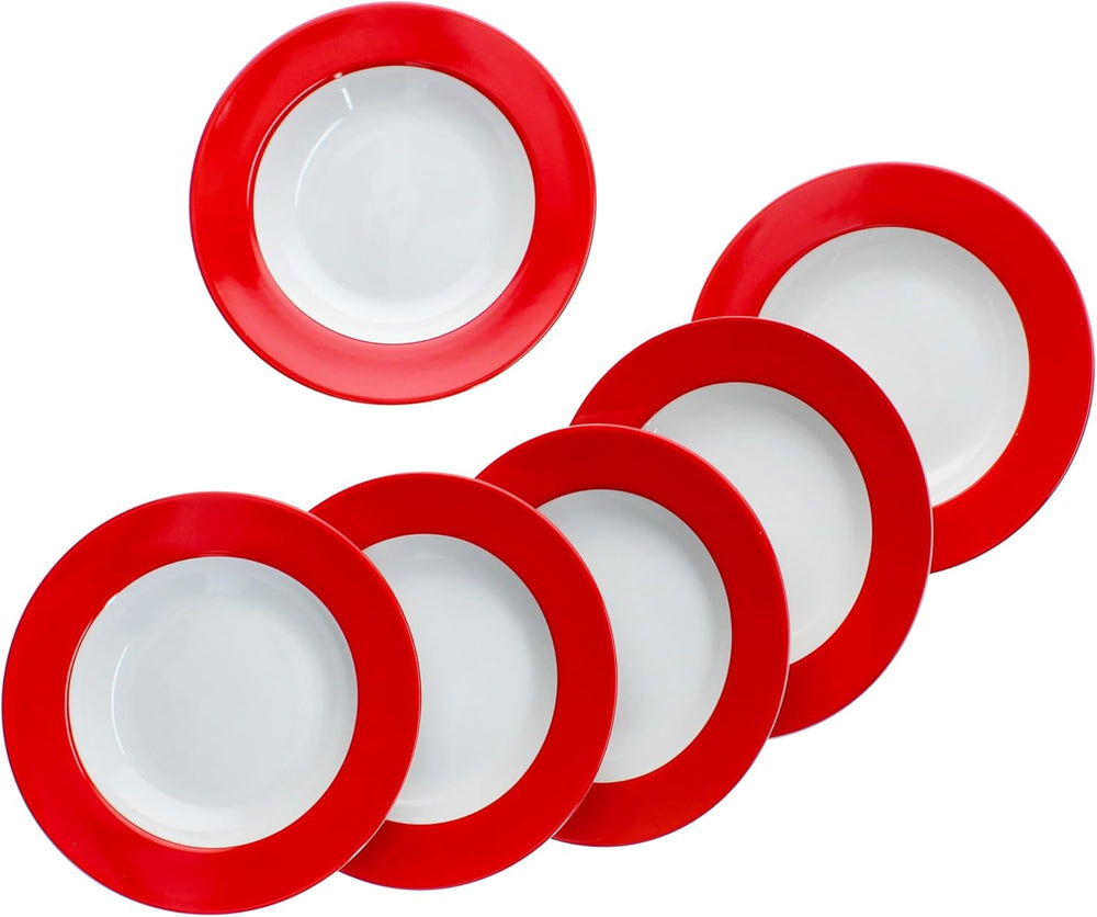 MamboCat 6er Set Variant Rot Suppenteller I farbige Tiefe Porzellan-Teller für 6 Personen I Bunte ru