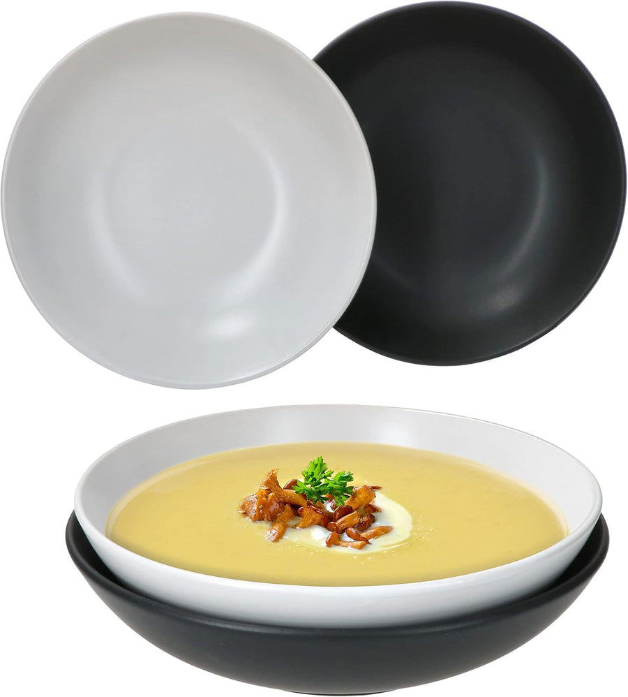 MamboCat Nero Bianco 4er Set Suppenteller tief I 550ml I Ø 20,5 cm I 4 Personen I weisses & schwarze