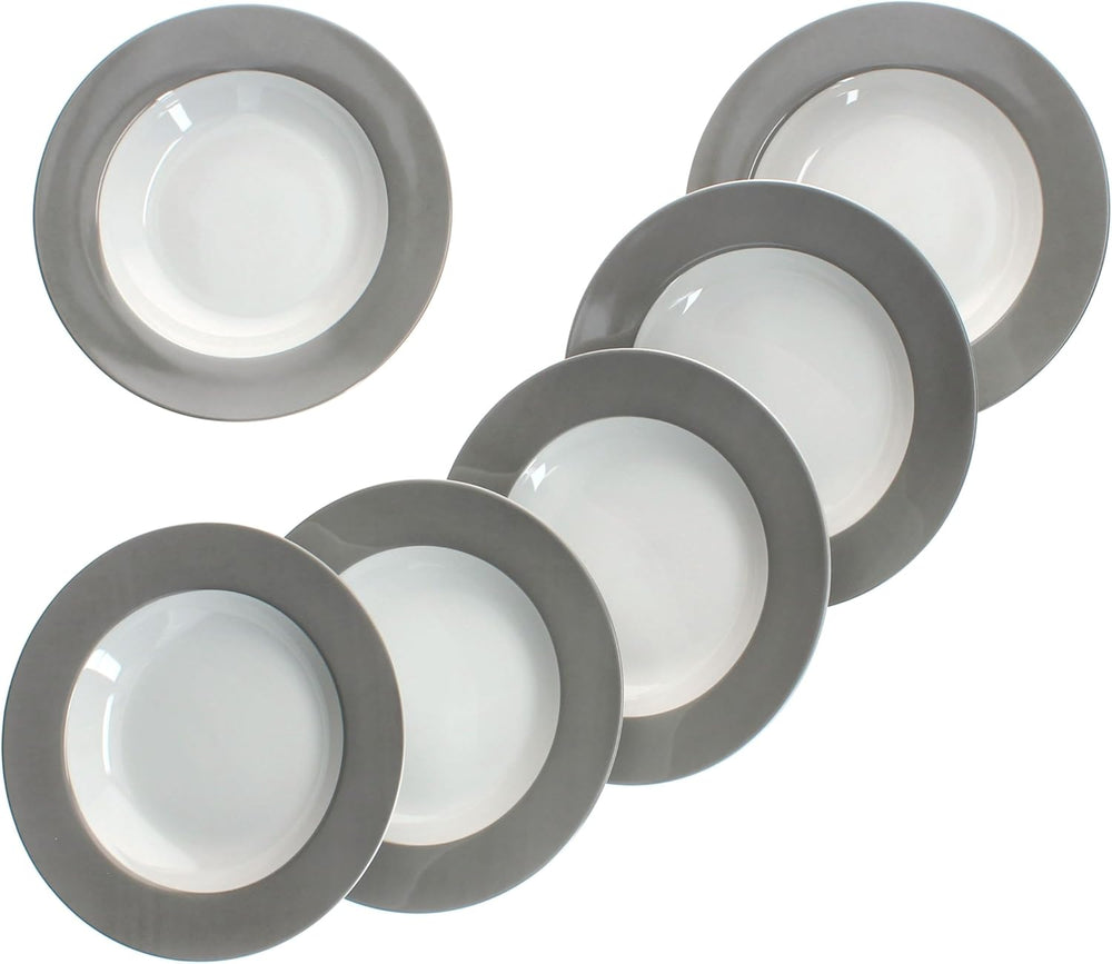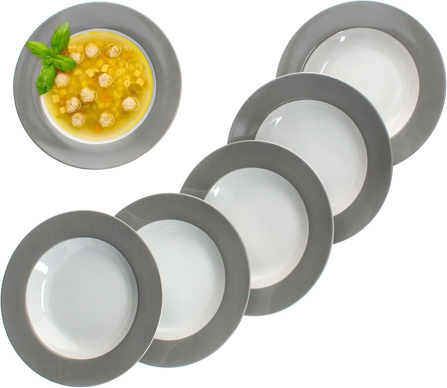 MamboCat 6er Set Variant Grau Suppenteller I farbige Tiefe Porzellan-Teller für 6 Personen I Bunte r
