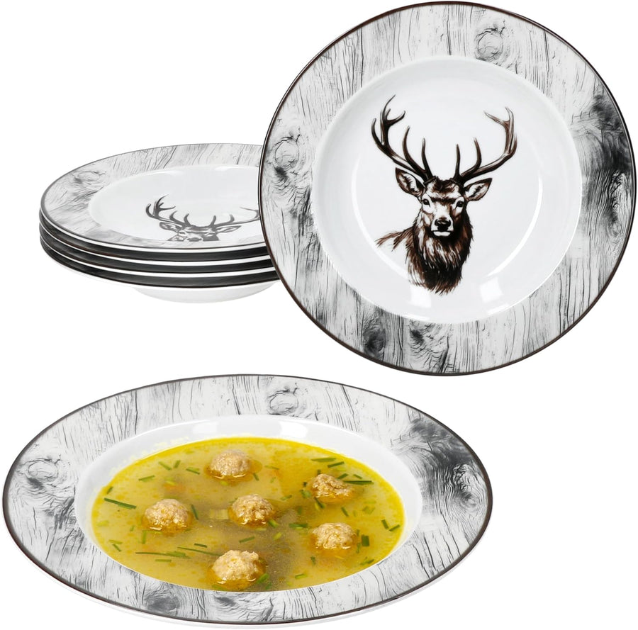 MamboCat Alois 6er Set Suppenteller I 180ml I Porzellan-Geschirr mit Hirsch-Dekor für 6 Personen I T