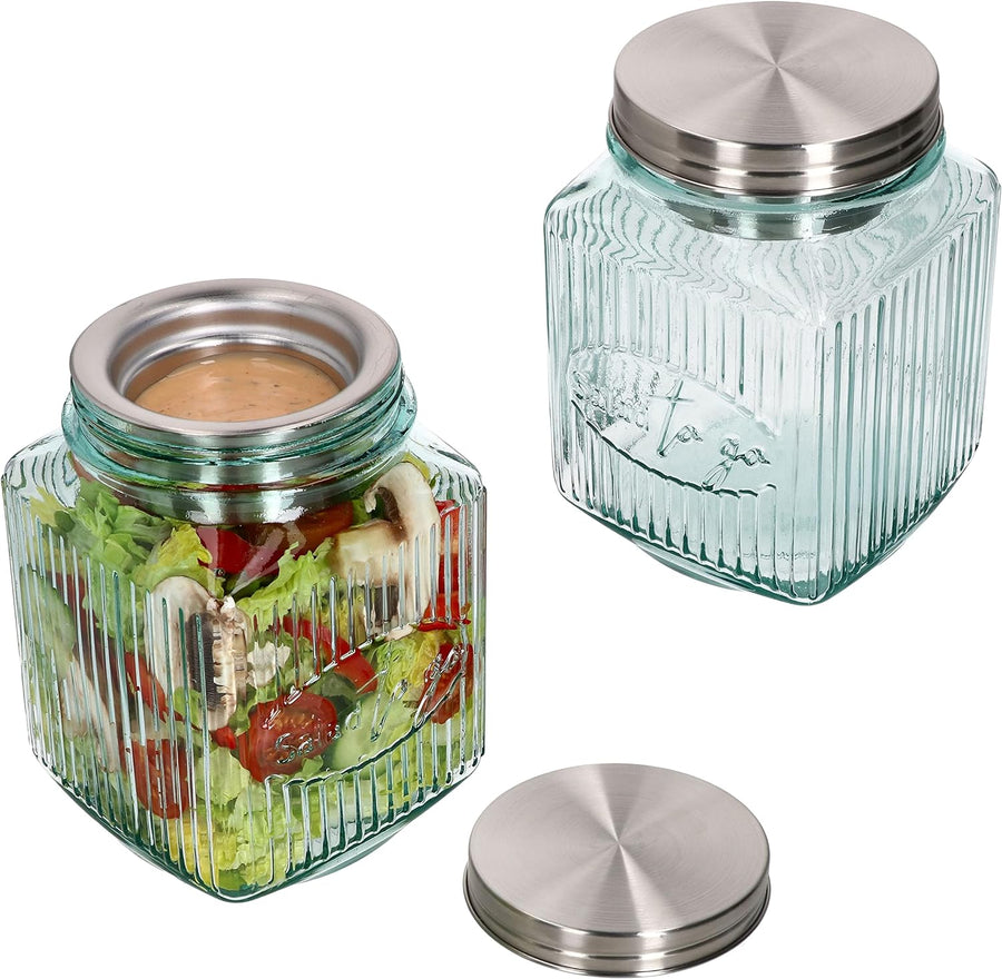 MamboCat 6tlg Set Salat to Go Vorratsglas 1 L I Aufbewahrungsbehälter für Salat I 100% recyceltes Gl