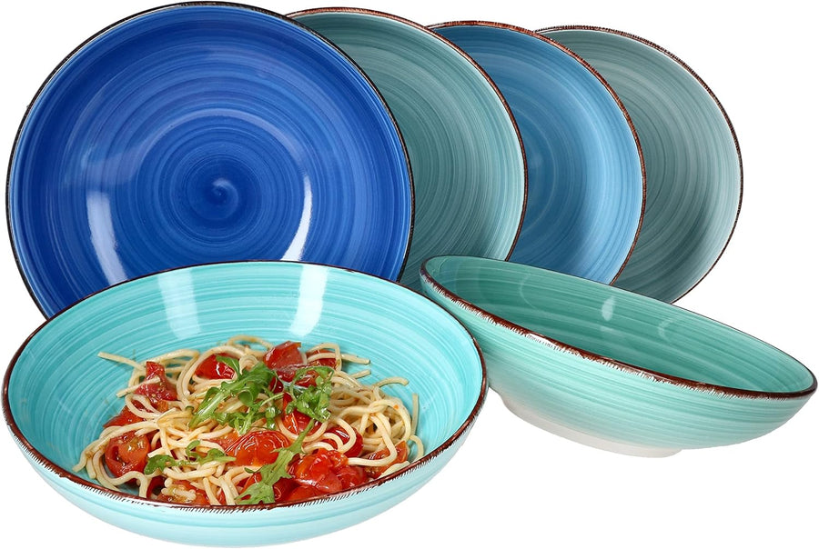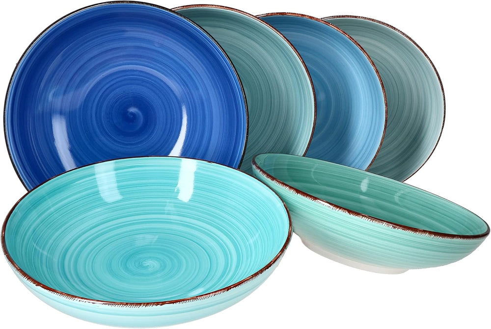 MamboCat Blue Spaghetti-Teller Set 6-teilig I Pasta-Teller tief Ø 23,5 cm I Salat-Schale 800 ml I St