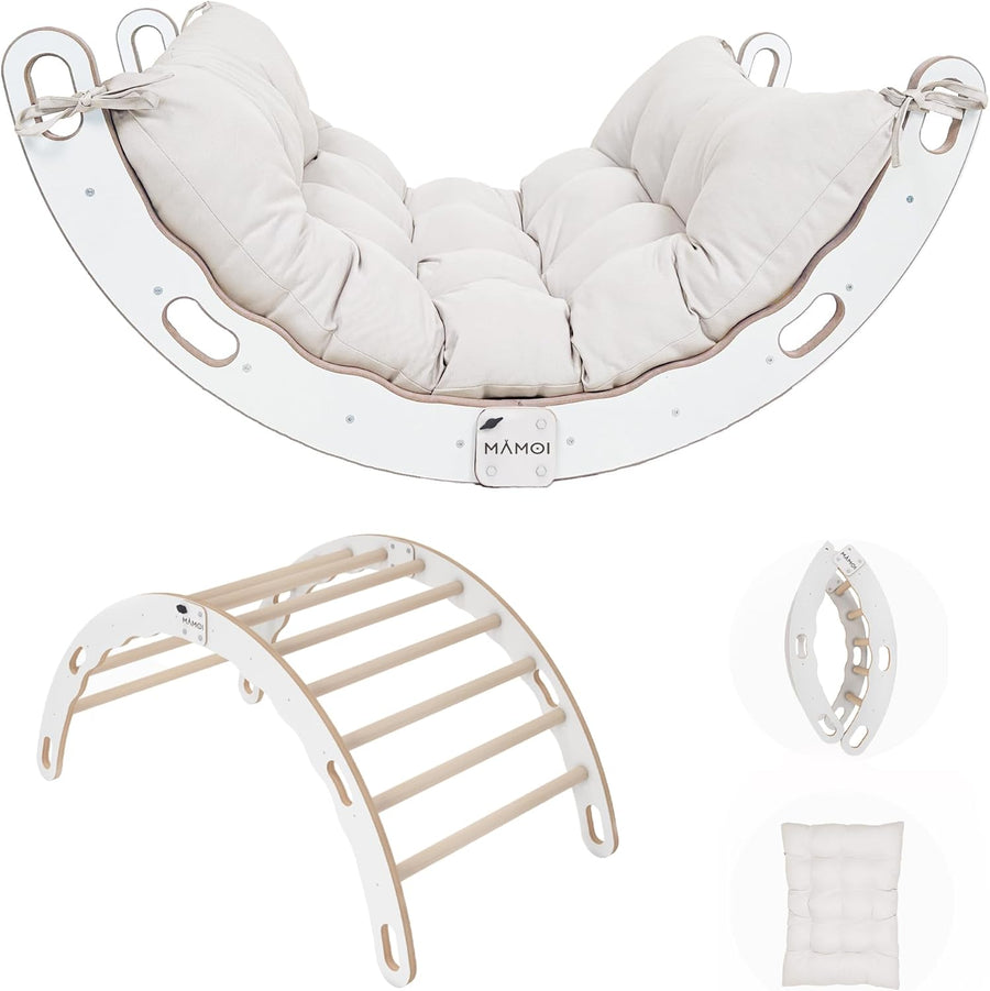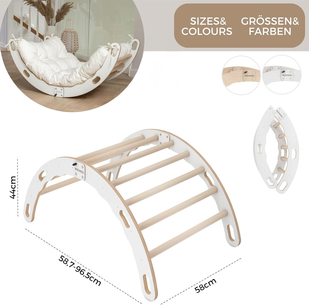 MAMOI® Kletter-Dreieck | Holz Klettergerüst Indoor | Kletterbogen mit Matte | Regenbogenwippe Holz |