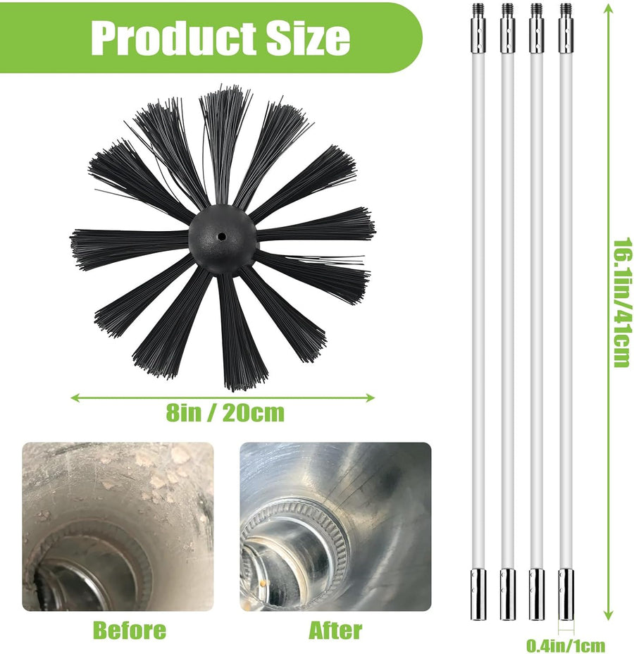 MaxEarn 24 STK Kaminbürste Stange Set mit 18 Flexible Stangen 410 mm+ 2 Bürstenköpfen 100mm + 1 Lang
