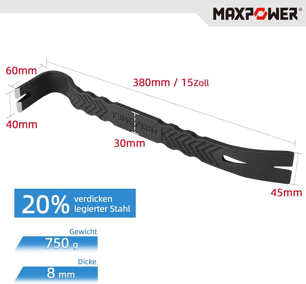 MAXPOWER 2 Stücke Nageleisen Set 300mm/380mm Flach Brecheisen Strickble Brechstangen Set Robust und