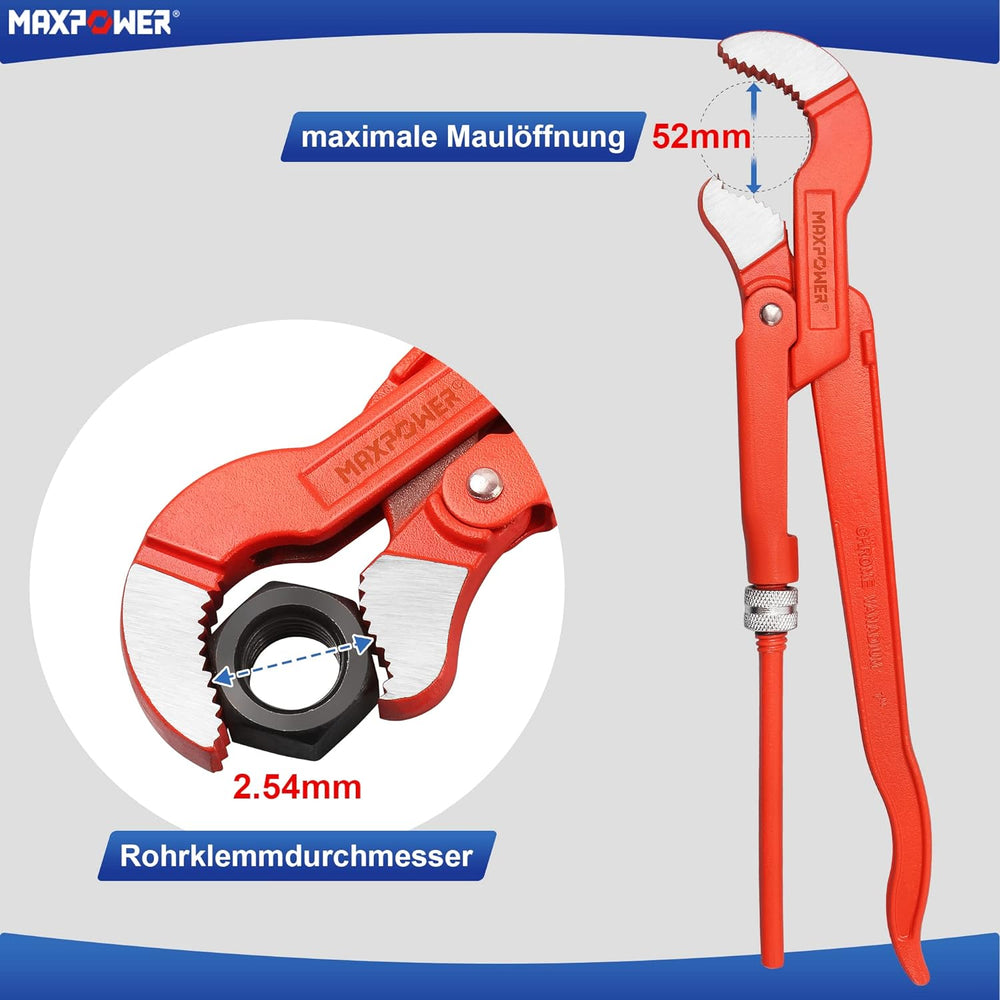 MAXPOWER Abgewinkelte Eck-Rohrzange 1 Zoll S-Maul Wasserrohrzange 330mm S-förmige Backe x 30,5 cm Lä