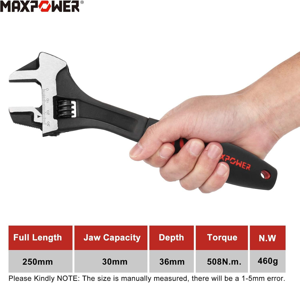 MAXPOWER verstellbarer Schraubenschlüssel 250mm Einmaulschlüssel 30mm breiter Backen verstellbarer S