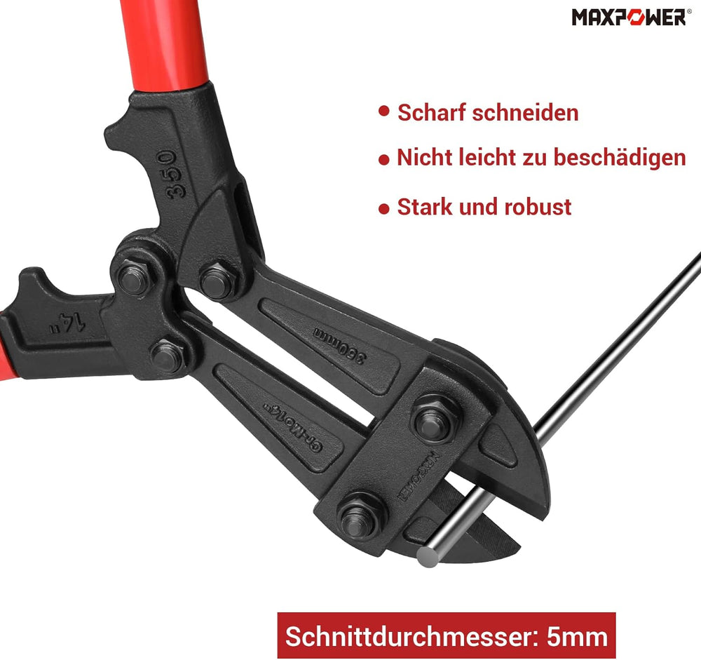 MAXPOWER 350mm Bolzenschneider Schnittdurchmesser 5mm Bolzenschneider für Schlösser 350mm/14 Zoll, 3