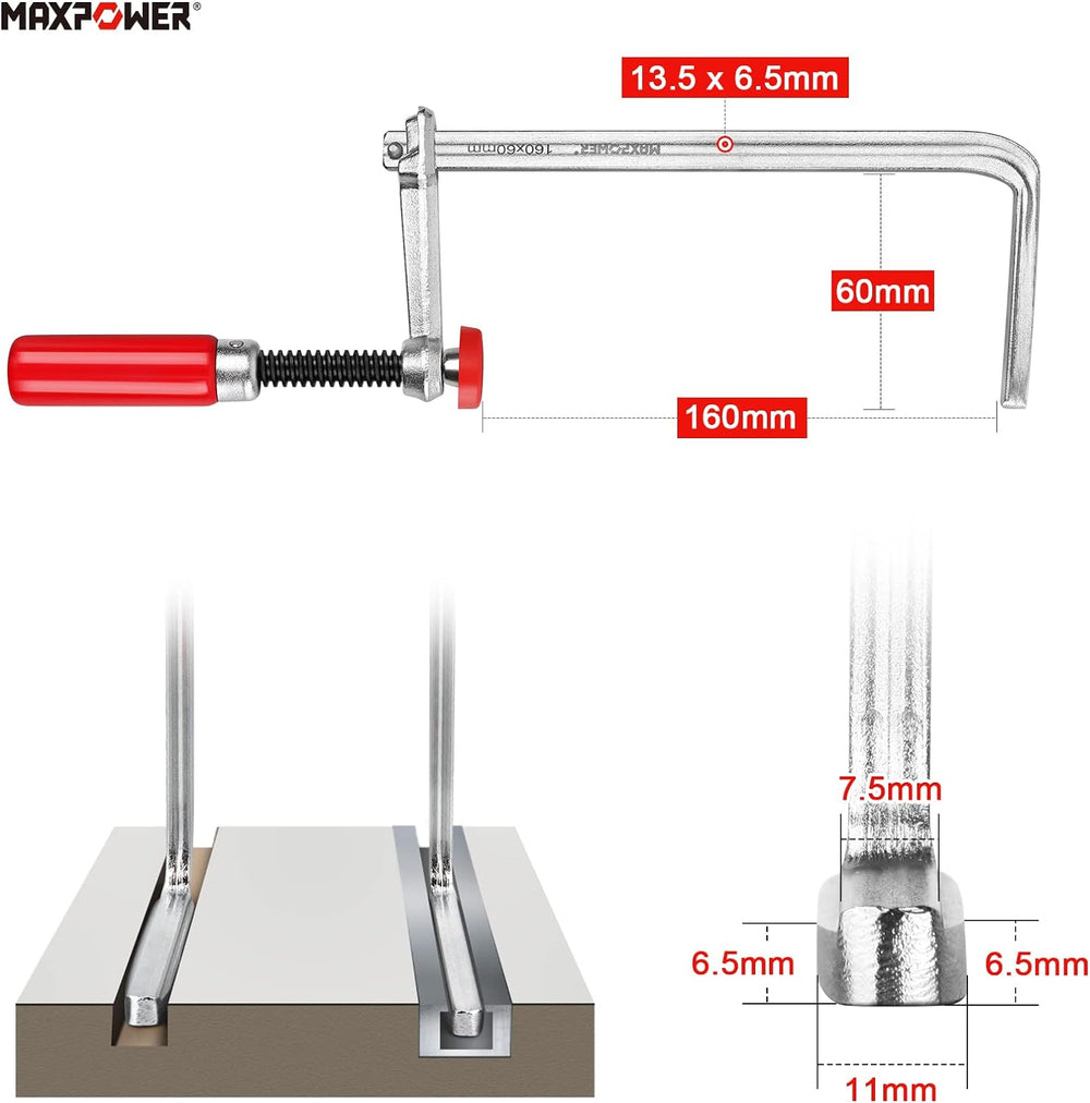 MAXPOWER 1 Paar 160mm x 60 mm Professionelle Schraubzwingen Set für Führungsschienen oder Tischklemm