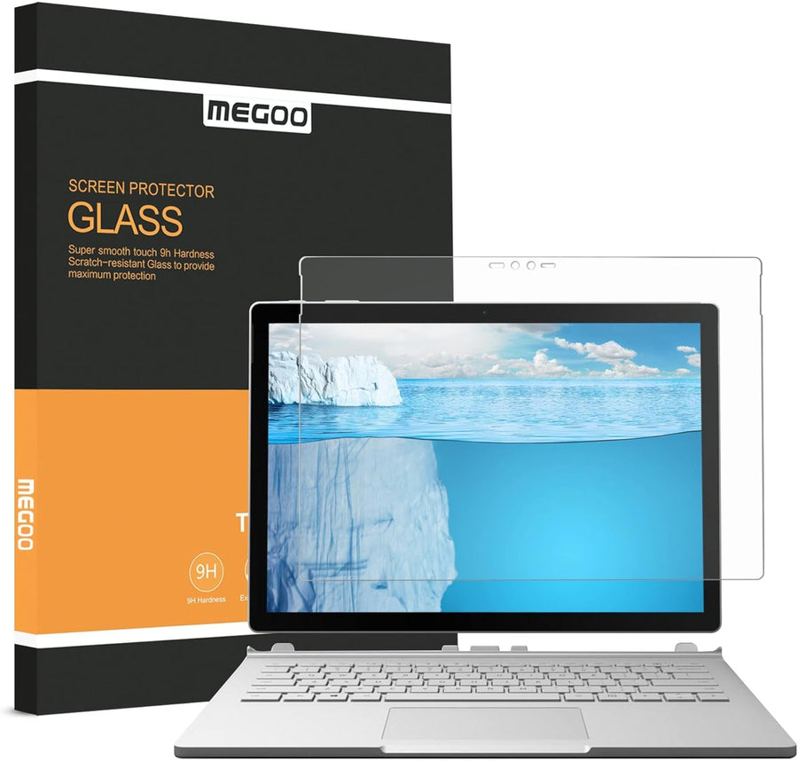 MEGOO Surface Book 2 Schutzfolie gehärtetes Glas, Einfache Installation/ 9H Härte/Klar Anti-Kratz Pa