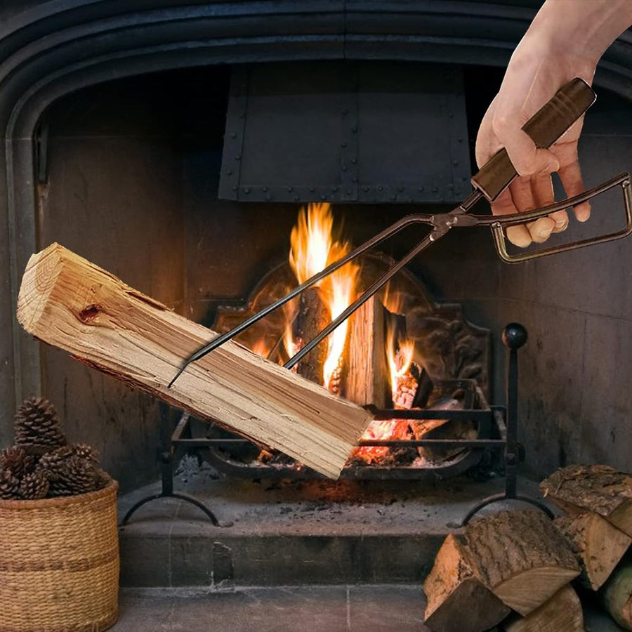 Kaminzange, 40cm Schwerlast Kaminholzzange Feuerholzzange kaminzubehör Kaminbesteck Anti-Verbrühung