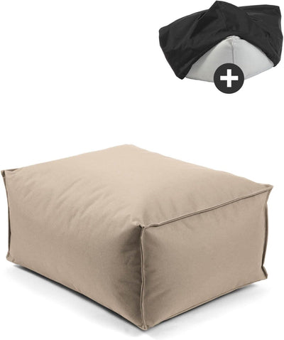 mokebo® Outdoor Pouf o. Hocker 60x45cm in Beige für Balkon & Garten 'Der Ruhepouf' Bodenkissen eckig