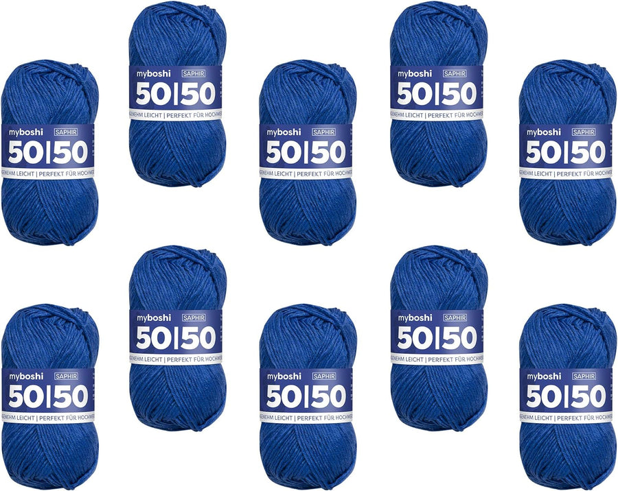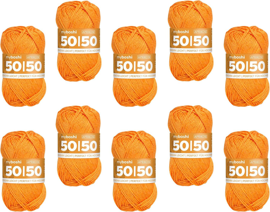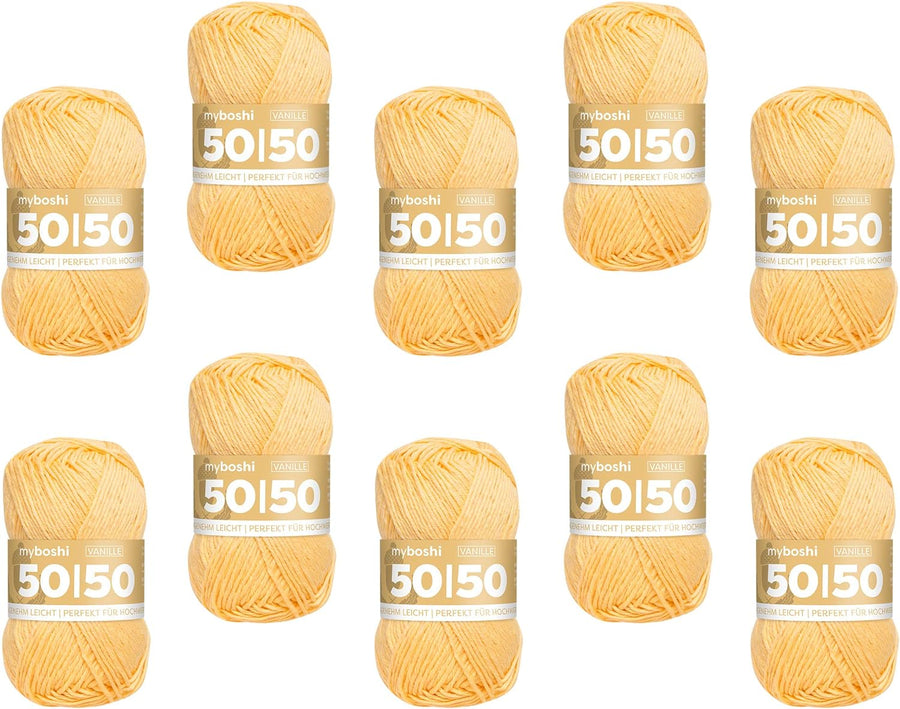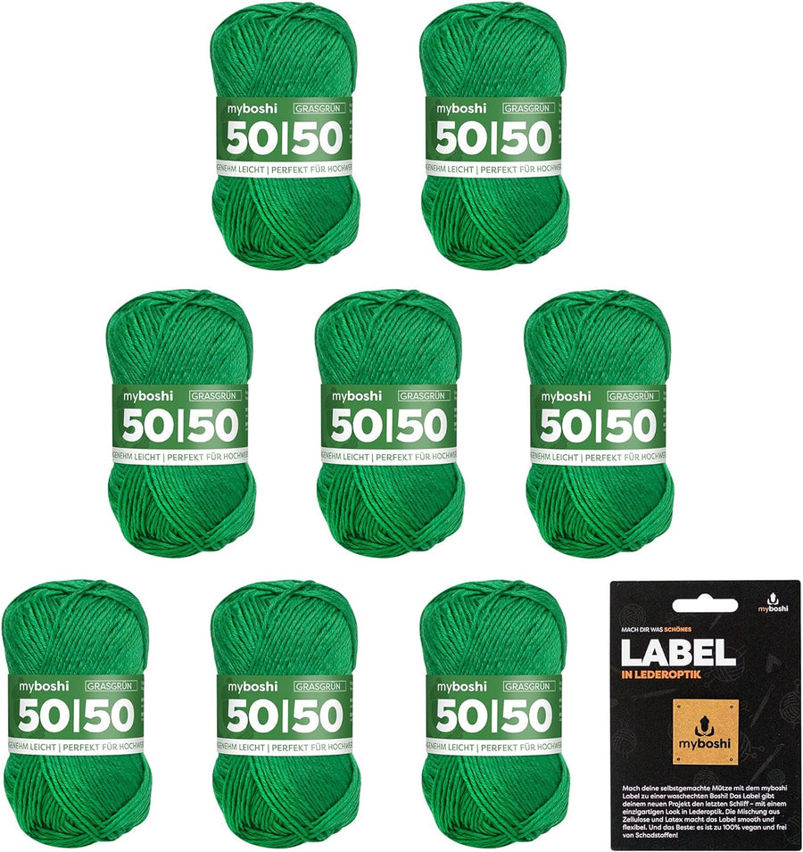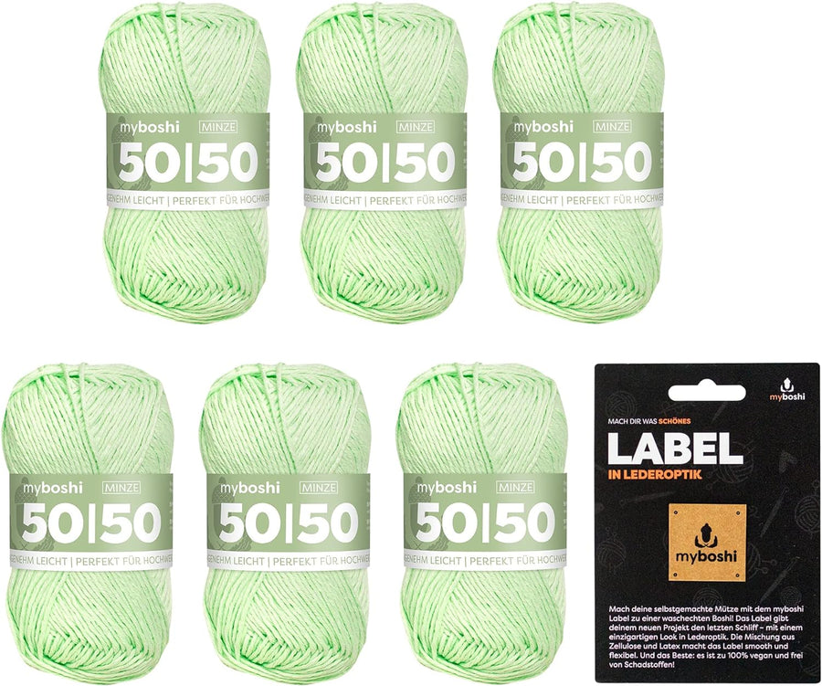 myboshi 50/50 Wolle, Baumwoll-Merino-Mix, hochwertiges Häkelgarn, Strickgarn, inkl. Label, 50% Baumw
