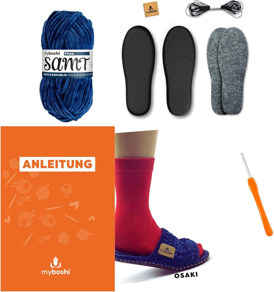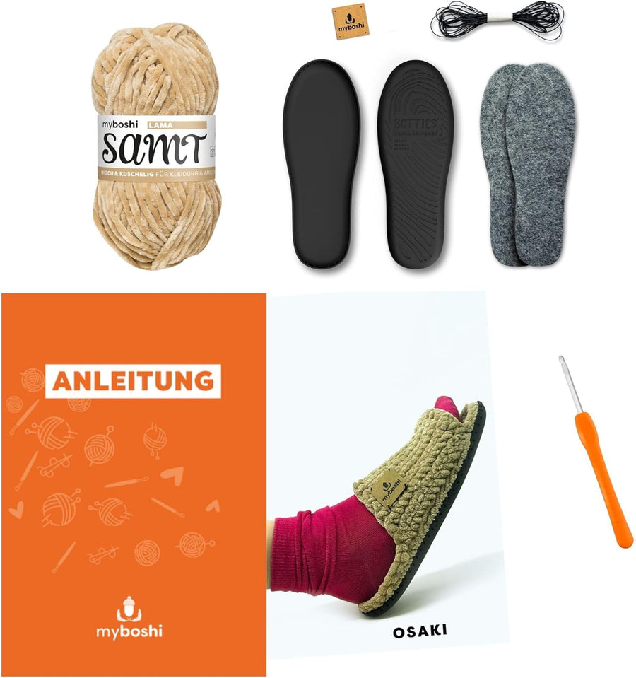 myboshi Häkelset Boshilette Osaki, für Anfänger, inkl. Botties Sohlen-Set, Samt Wolle, Häkelnadel, A