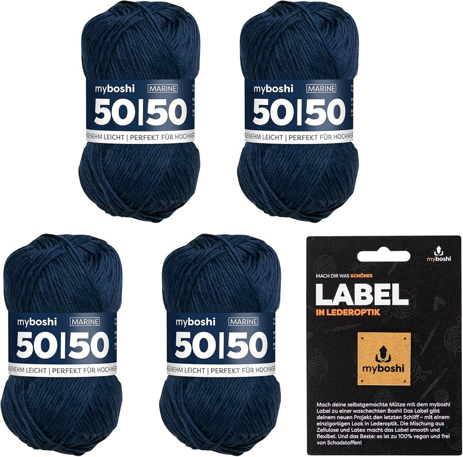 myboshi 50/50-Ganzjahres-Wolle, inkl. original myboshi Label in Lederoptik, für Oberbekleidung geeig