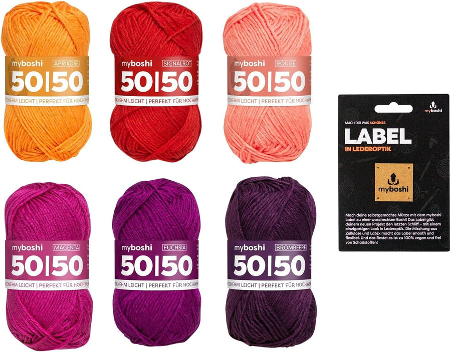 myboshi Beerentraum Wollpaket, 50/50 Wolle in Beerentönen, mit original Label, all-in-one-Paket, 6 K