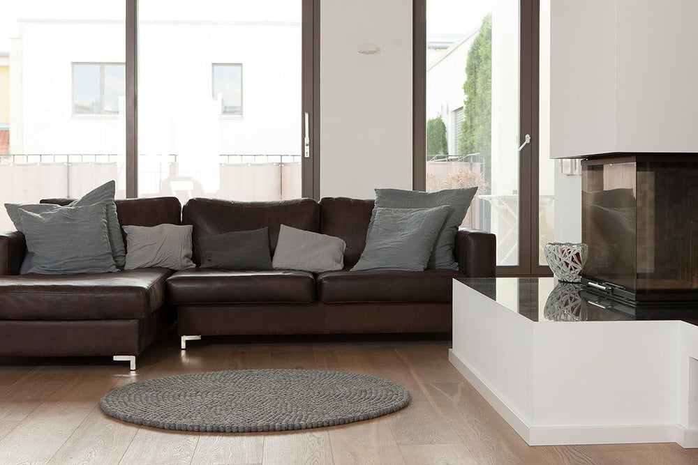 myfelt Filzkugelteppich Hugo - Ø 50 cm, ideal für Schlaf-, Wohn-, Kinderzimmer, Flur & Bad, anthrazi