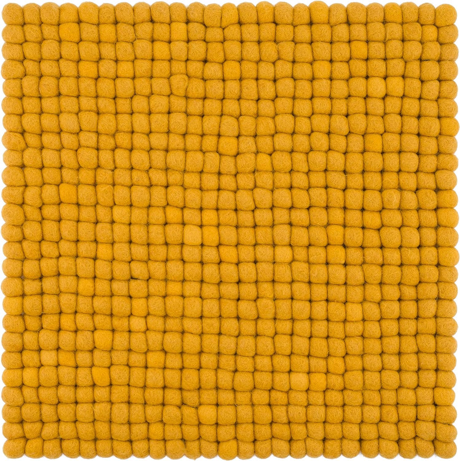 myfelt Filzkugel-Sitzauflage Stuhlauflage - Klara - quadratisch, 36x36 cm, Senfgelb, Senfgelb