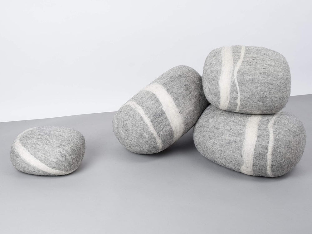 myfelt Carl - Filz Kieselstein, Meditationskissen, Yogakissen, Dekokissen hellgrau rund - Grösse XL
